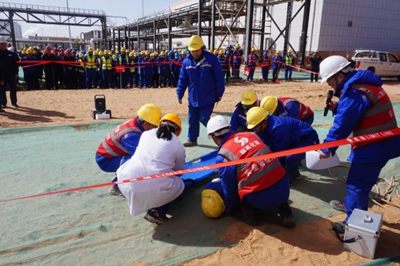 近日,由北京石油化工工程有限公司EPC總承包延長石油靖邊天然氣儲氣調峰及配套LNG項目開展了高處墜落應急演練。
