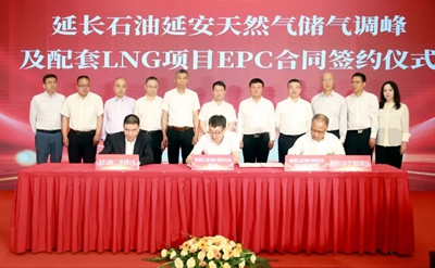 4月23日,延長石油延安天然氣儲氣調峰及配套LNG項目EPC總承包簽約儀式在西安舉行。延長石油煉化公司黨委書記、總經理烏忠理,副總經理馮奇國,項目建設指揮部黨委書記、指揮強挑戰,延長石油天然氣股份有限公司黨委書記、總經理高買華,北京石油化工工程有限公司(簡稱:北油工程)黨委書記、董事長許緘濤,紀委書記馬春寧出席簽約儀式。儀式由北油工程總經理助理、安全總監楊礫主持。