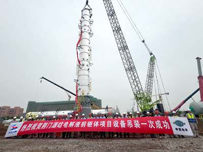 近日,由北京石油化工工程有限公司總承包的荊門源晗電池材料有限公司20萬噸/年乙醇裝置(含電子級(jí)乙醇)項(xiàng)目核心設(shè)備電子級(jí)脫輕塔首段吊裝順利完成,標(biāo)志著乙醇主裝置大型設(shè)備安裝工作正式啟動(dòng),項(xiàng)目全面進(jìn)入設(shè)備安裝和工藝配管階段。荊門源晗電池材料有限公司總經(jīng)理、北油工程公司副總經(jīng)理尹長(zhǎng)炳,以及監(jiān)理單位和施工單位主要負(fù)責(zé)人共同見證了此次重要吊裝作業(yè)。